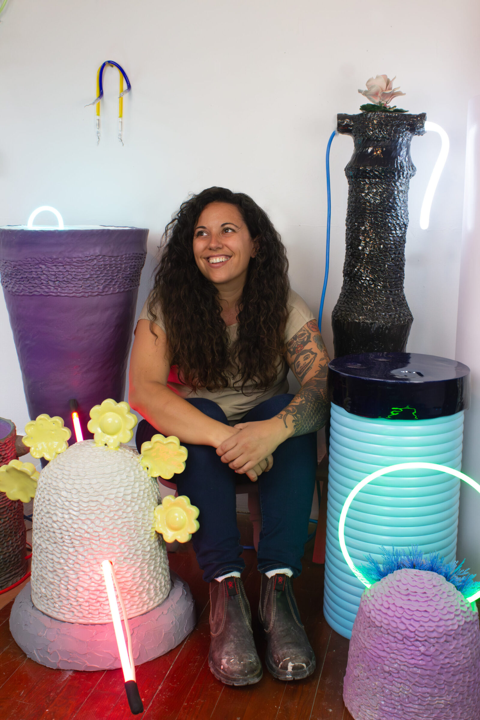 As far as artists that I look at for inspiration, Lucio Fontana, Beatrice Wood, and Toshiko Takaezu are always a few that are at the top. But I’ve also been really into post-war art collectives like COBRA and The Gutai lately. It seems like there are always groups of artists that prioritize play and metaphoric narrative following times of global strife and political upheaval. As far as living artists go, I have recently been looking at a lot of Tiff Massey’s work, who is based out of Detroit, Takuro Kuwata’s work, who has an awesome show up in NYC right now at Salon 94, and Jeffrey Gibson whose installation at Mass Moca recently blew my socks off. But to be perfectly honest, when I’m stuck in a rut creatively, I find the best thing I can do is go for a really long walk, jump in the ocean, or just watch a bunch of goofy cartoons. Some of the best inspiration I find is not necessarily in the studio or art-based places, but more so where art making takes a back seat and observation and experience are front and center.