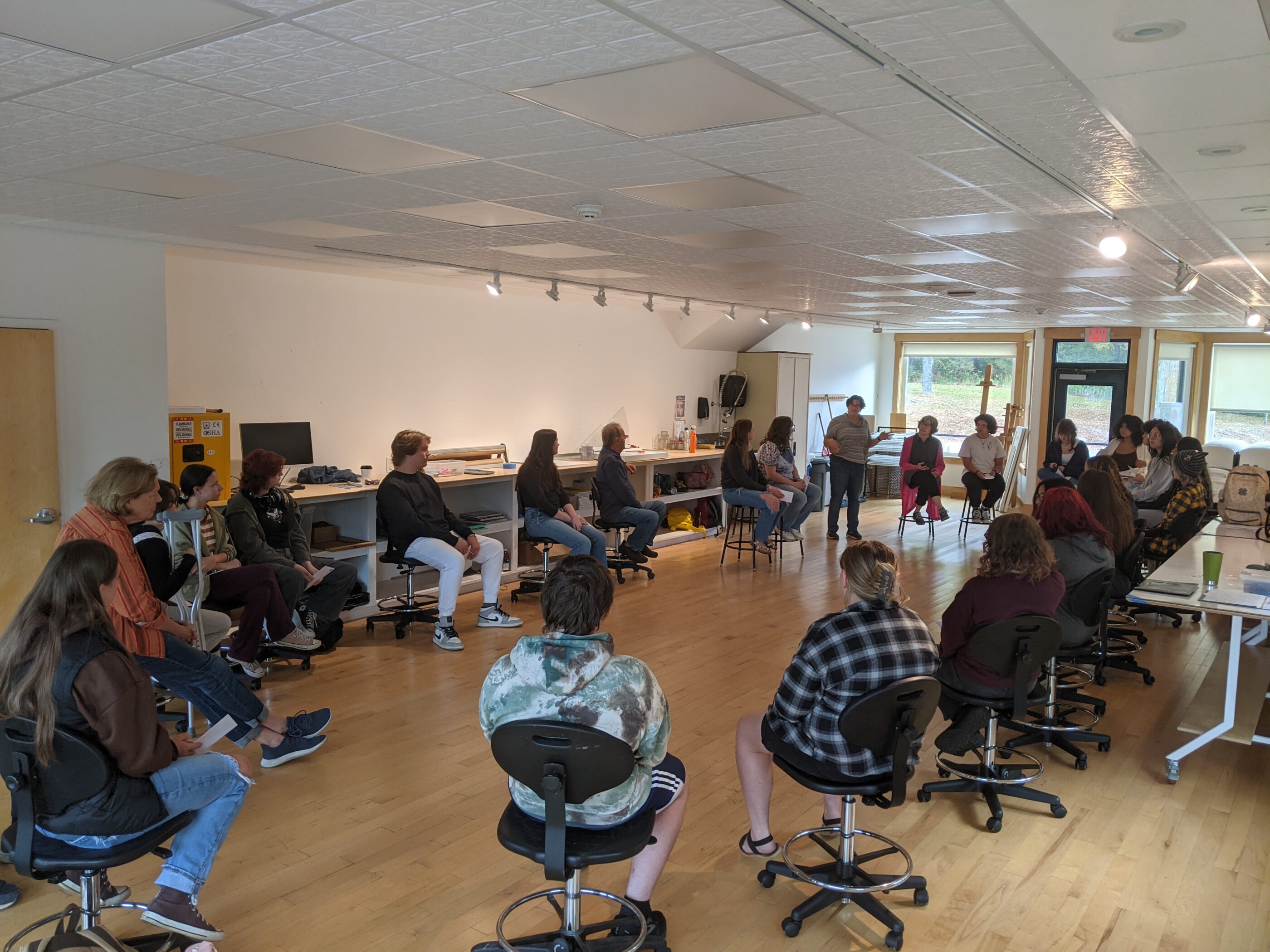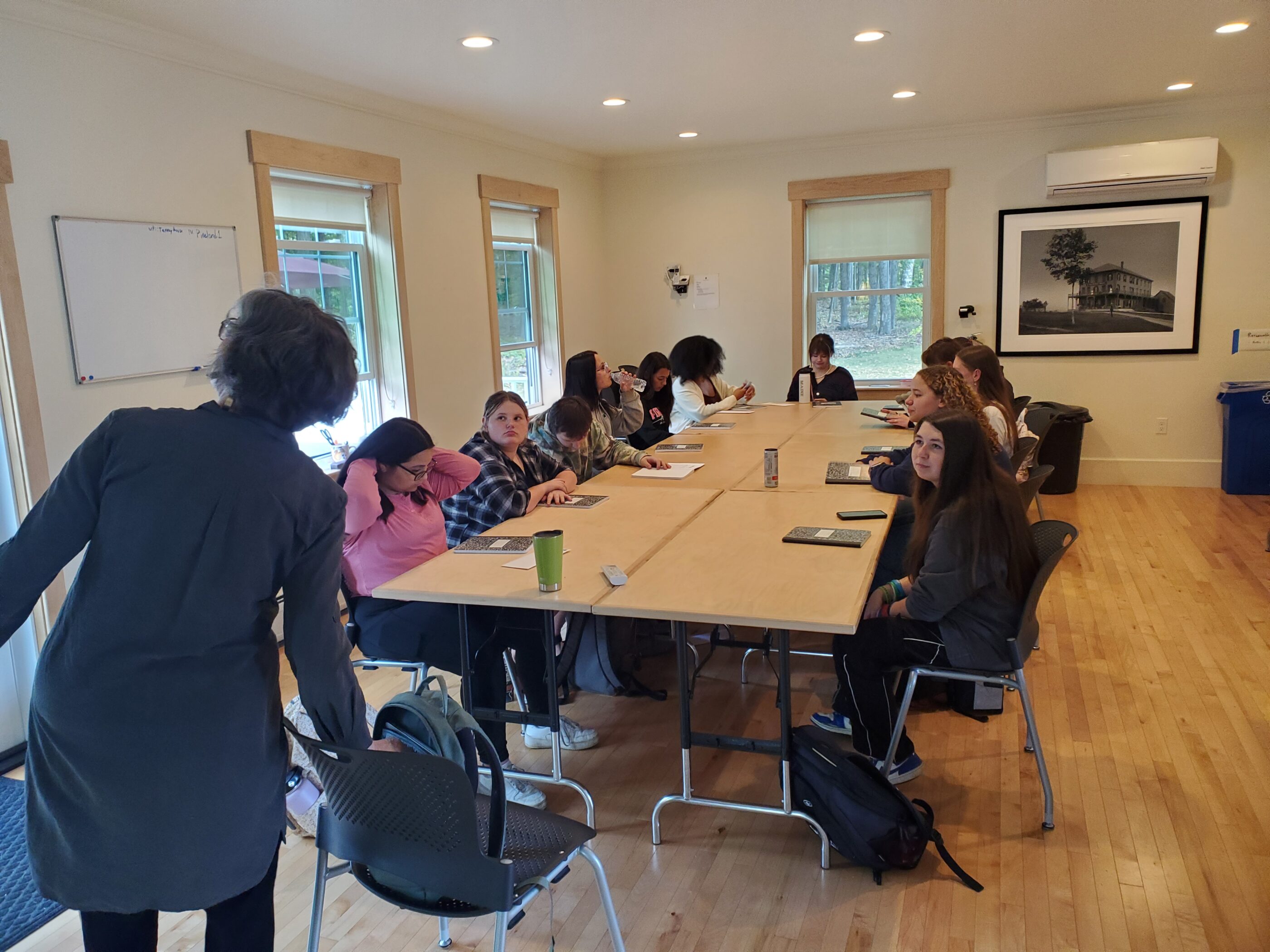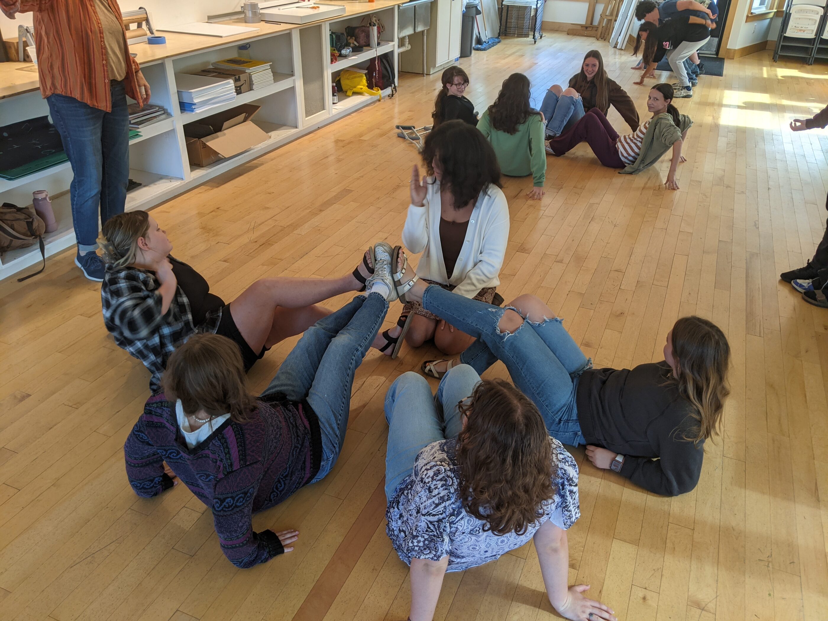 What a fantastic start to this year’s Monson Arts High School Program! We had 24 students from six local high schools join us in multiple creative team building exercises led again this year by Portland based improv artist, dancer, poet, and educator Gretchen Berg.
