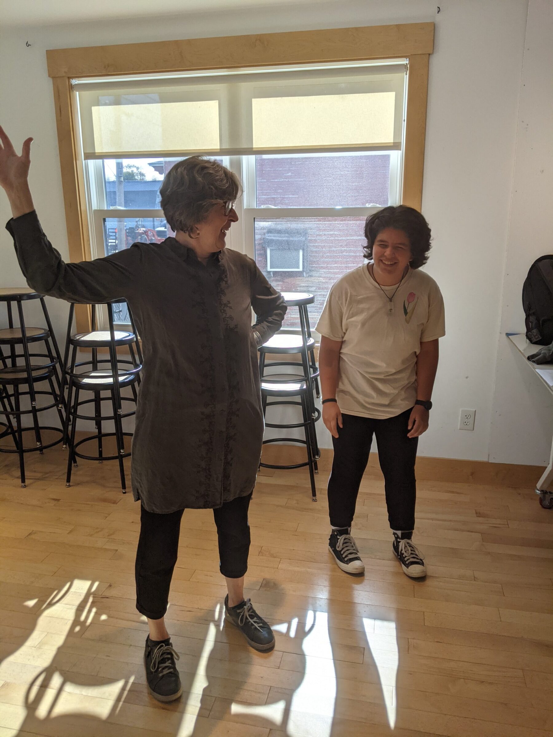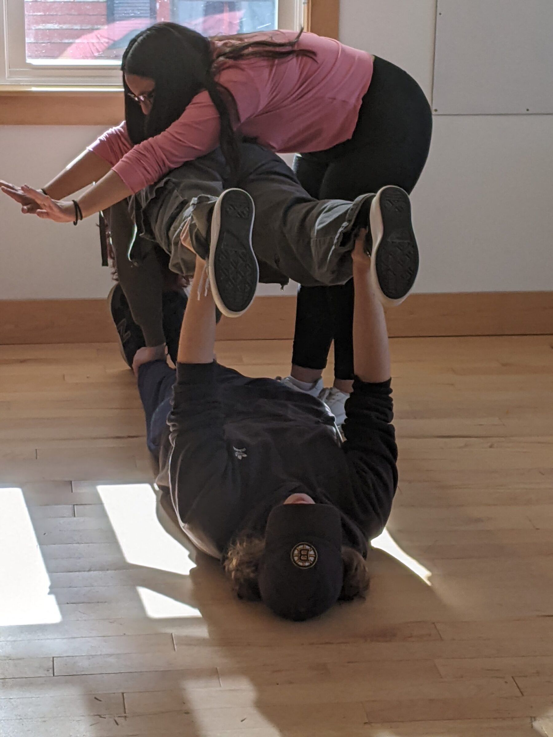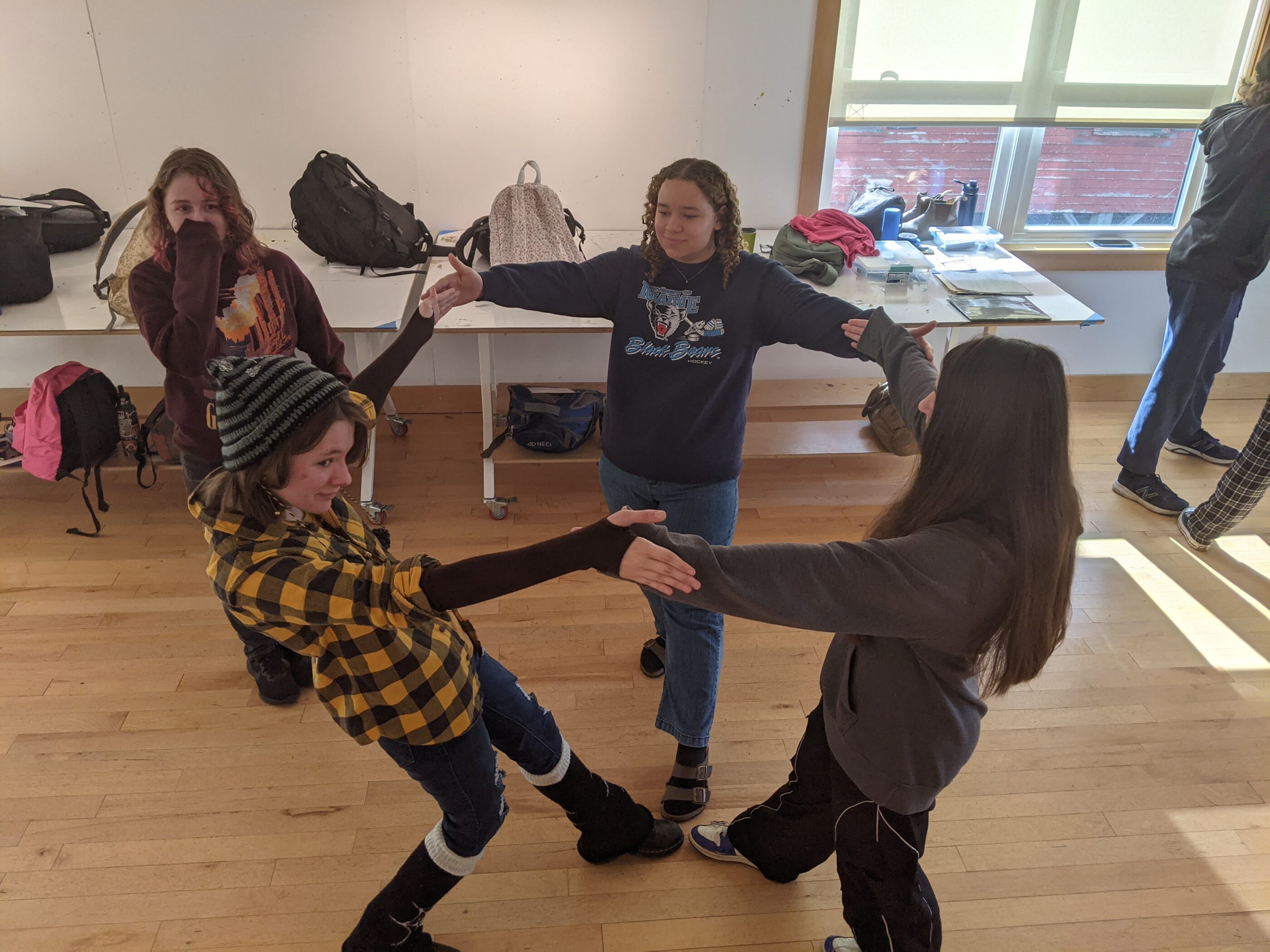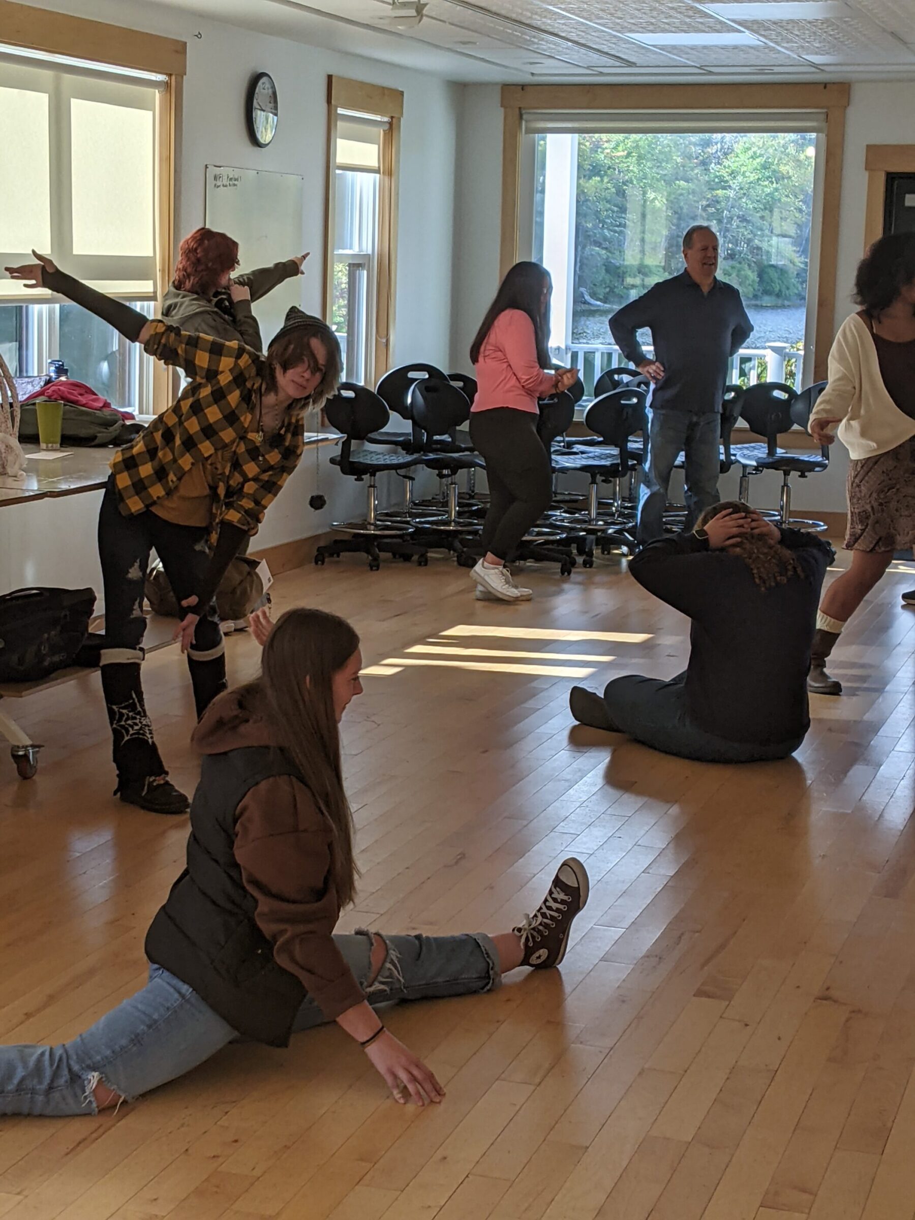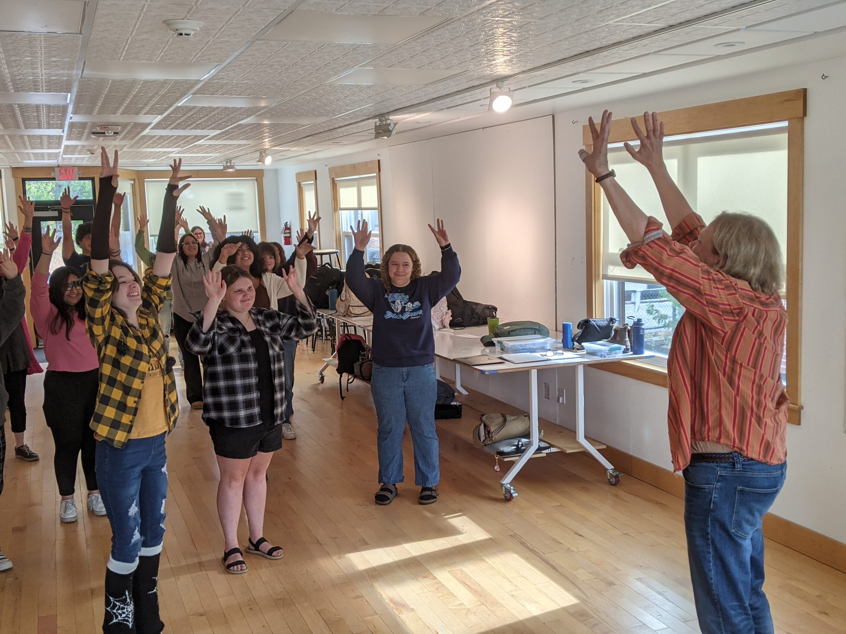 After settling in and doing introductions, students jumped into a series of engaging improv sessions where they were paired off with random peers to both get to know one another and to start thinking and acting creatively. Monson Arts Staff and teachers Alan and Dawn also joined students as the cohort problem solved a series of directed challenges involving dance, acting, and moving performance stories. All the students jumped headfirst into the activities!